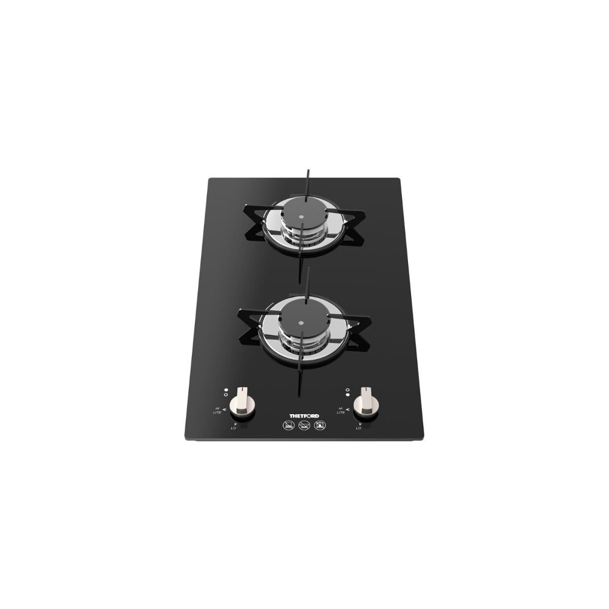 Topline 922 Two Burner Gas Hob. The Thetford Topline Hob 922 is a sleek, 2-burner gas hob made of high-quality Schott Ceran black glass. Stylish and functional with durable, easy-to-clean materials.